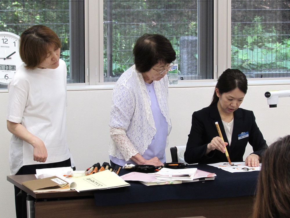 | 内容 | 小・中学校国語科書写や高等学校芸術科書道の観点から技能と理論を学習します。 手本が無くても、整った文字を書く力、学校教育にも対応できる力を身に付けます。 |