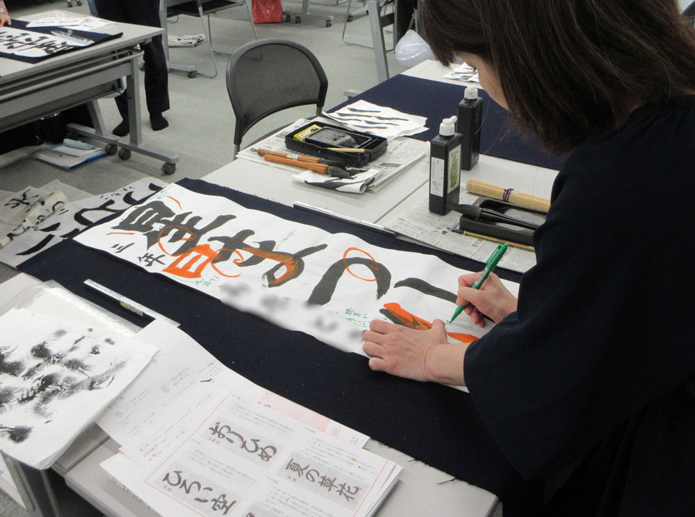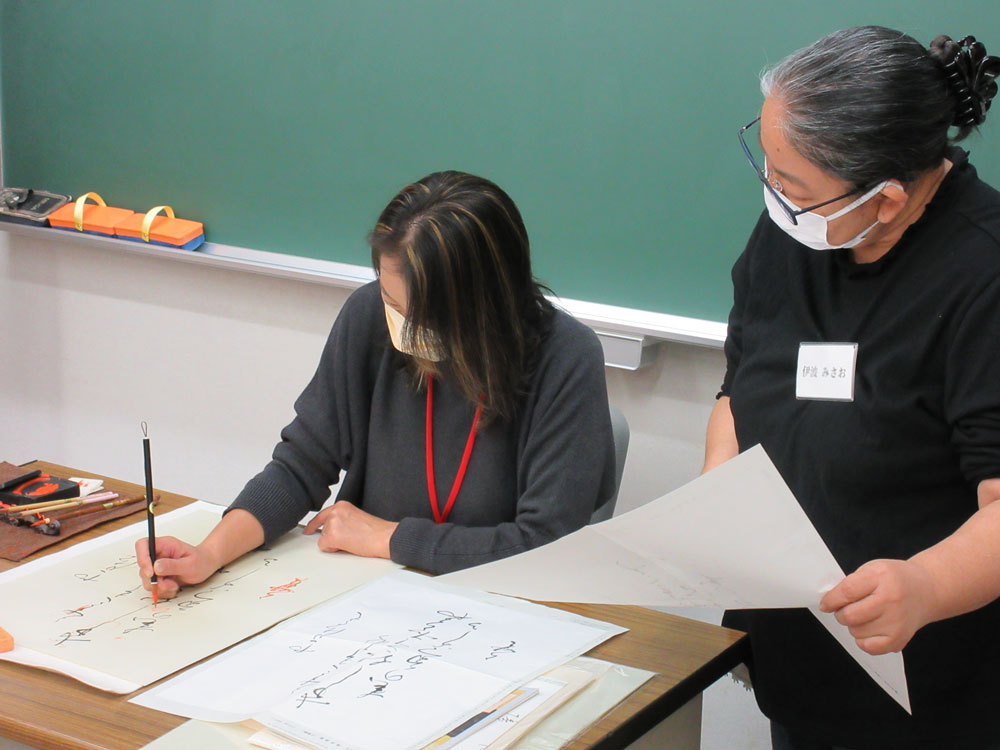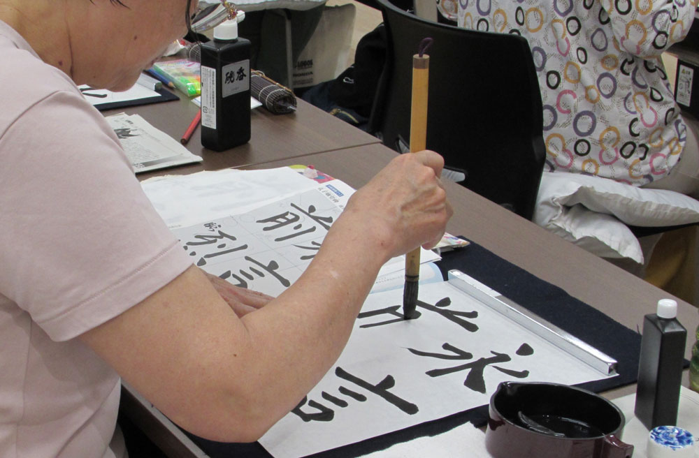 内容 | 漢字部・かな部・実用書などを年間のカリキュラムに添って学習します。 学習した内容を活かし、書式や作品制作についても学べる講座です。 |
