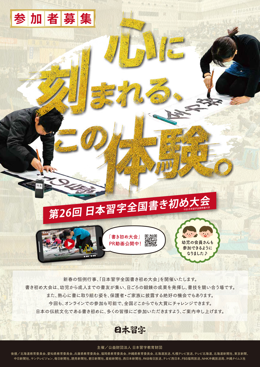 【心に刻まれる、この体験!「日本習字全国書き初め大会」参加者募集!】