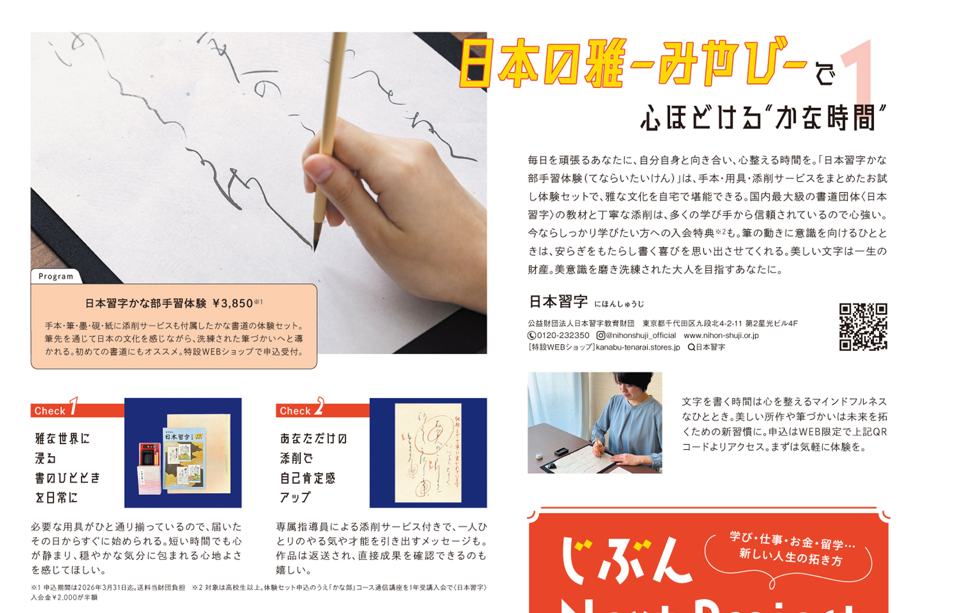 現在、特設ショップにて申込受付中の「日本習字かな部手習体験(てならいたいけん)」が、